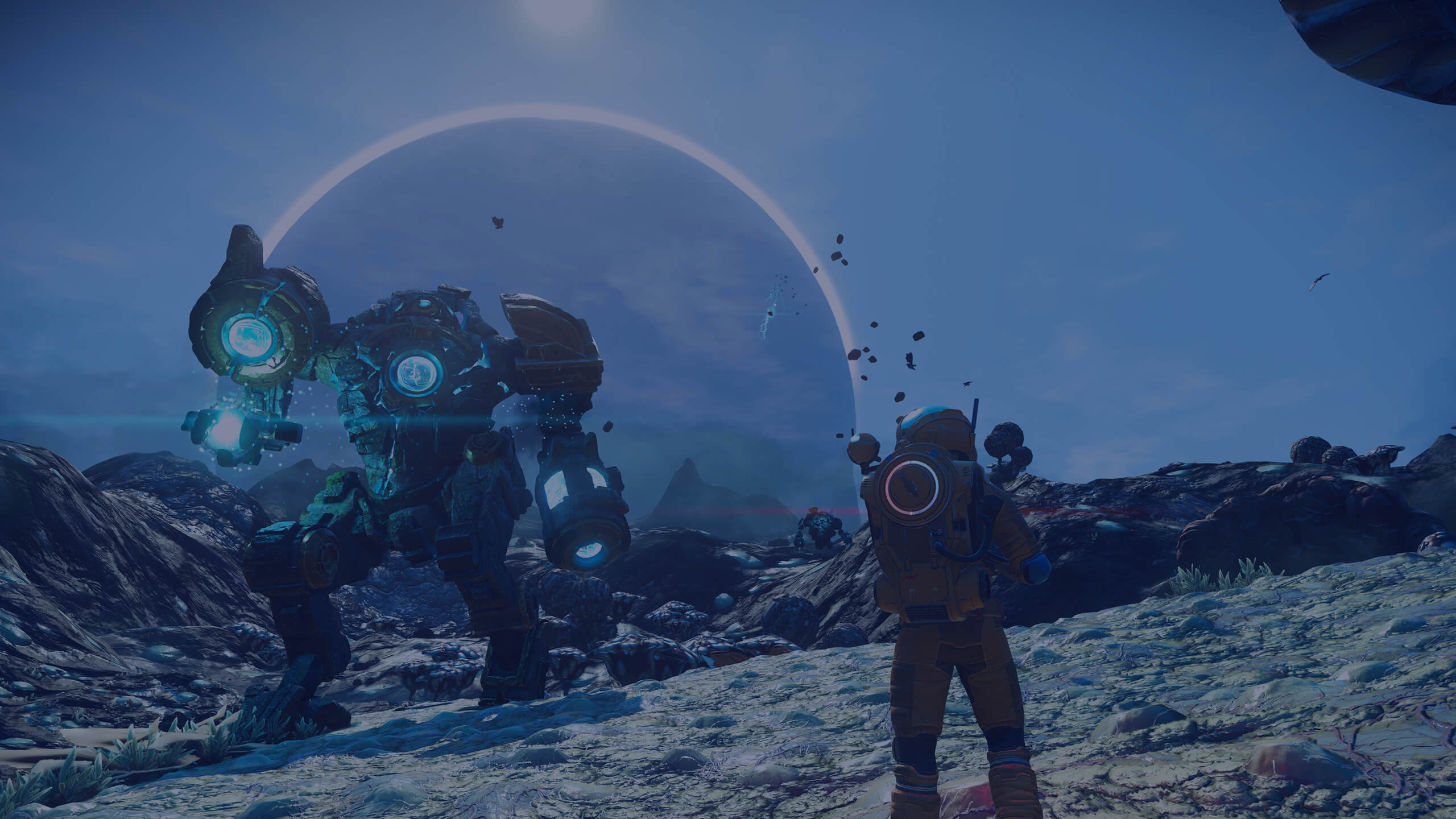 Playing in an abandoned universe has been streamlined and enhanced. Derelict space stations now contain functional upgrade stations for the Exosuit, starship, and Multi-Tool, as well as salvage boxes containing valuable upgrades. Travellers can scavenge further technologies from planetary buried caches, and purple systems are automatically visible on the Galaxy map.